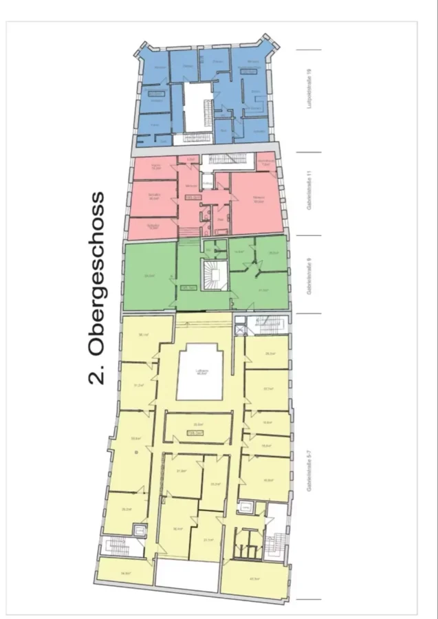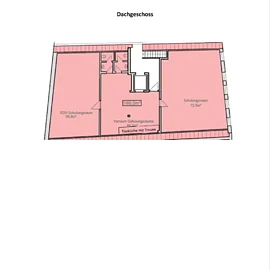 insgesamt 735 qm: I.OG: 390 qm; II.OG 196 qm; III.OG 160 qm