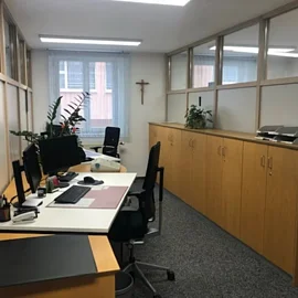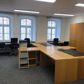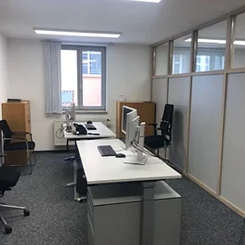 Die Räume sind auf der Südseite klimatisiert und im I. und III. OG über einen Fahrstuhl erreichbar. Jede Etage verfügt über eine kleine Teeküche und Toilette. Die Stockwerke sind auch einzeln vermietbar - die Aufteilung lässt sich flexibel gestalten. Die Nebenkosten sind eine Pauschale inkl. sämtlicher NK (auch Strom).