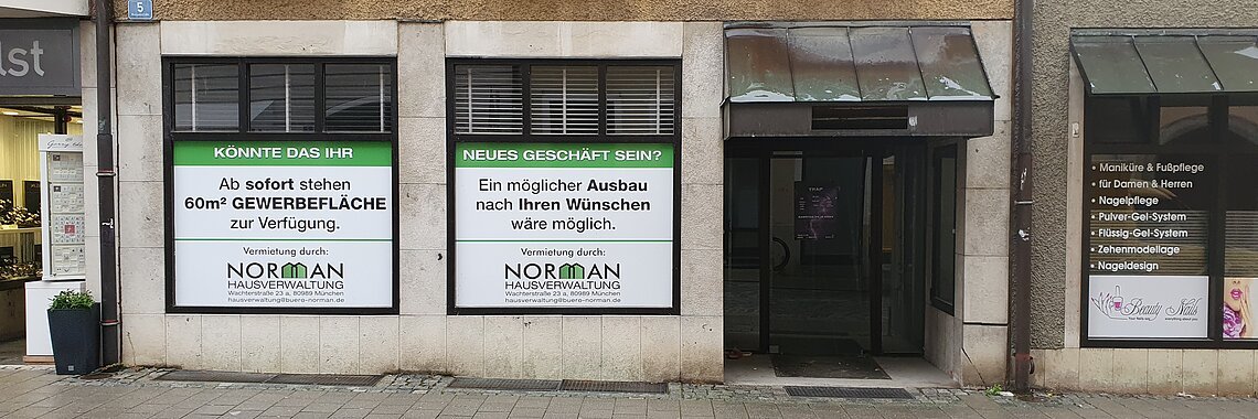 Die ca. 60 m² große Gewerbefläche steht ab sofort zur Verfügung.