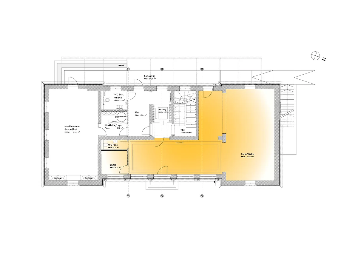 Das gesamte Bahnhofsgebäude wird von Grund auf saniert und mit Ausnahme dieser Erdgeschossfläche zukünftig durch die Volkshochschule, die Musikschule und weitere Vereine genutzt. Die anstehende Sanierung soll bis Ende 2027/Anfang 2028 abgeschlossen sein. Eine frühzeitige Abstimmung mit dem neuen Nutzer ermöglicht auch eine passgenaue Abstimmung der neu einzurichtenden Installation.
