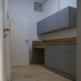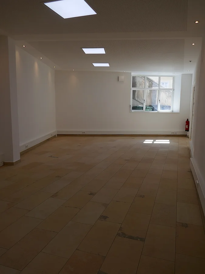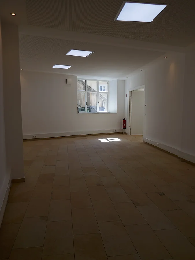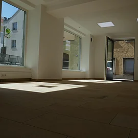 Die Immobilie besteht aus einer großen Geschäftsfläche, die mit einer Schiebetür in zwei Räume abgeteilt werden kann. Zusätzlich sind eine komplett eingerichtete Küche, eine kleine Lagerfläche sowie sanitäre Anlagen vorhanden. Das historische Gebäude wurde aufwendig denkmalgerecht grundsaniert und die Geschäftsfläche nach modernstem Standard ausgestattet.
